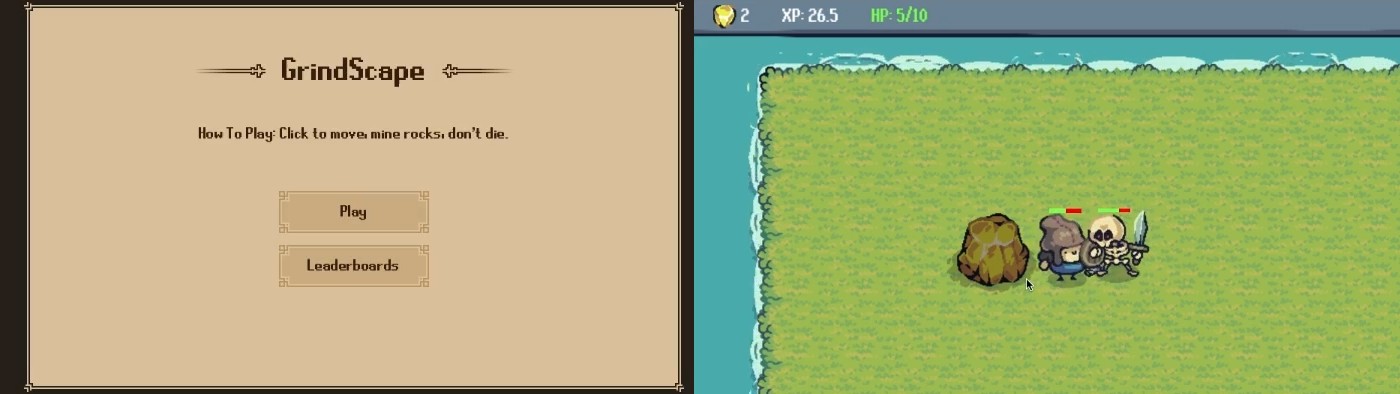 GrindScape is a small, simple game with a working gameplay loop. The player grinds a single mining skill, earns XP, and fends of a pesky skeleton NPC. There's a score that matters to players and that they'd want to compare. What it didn't have yet is any way to persist or share that score outside of the current session.
